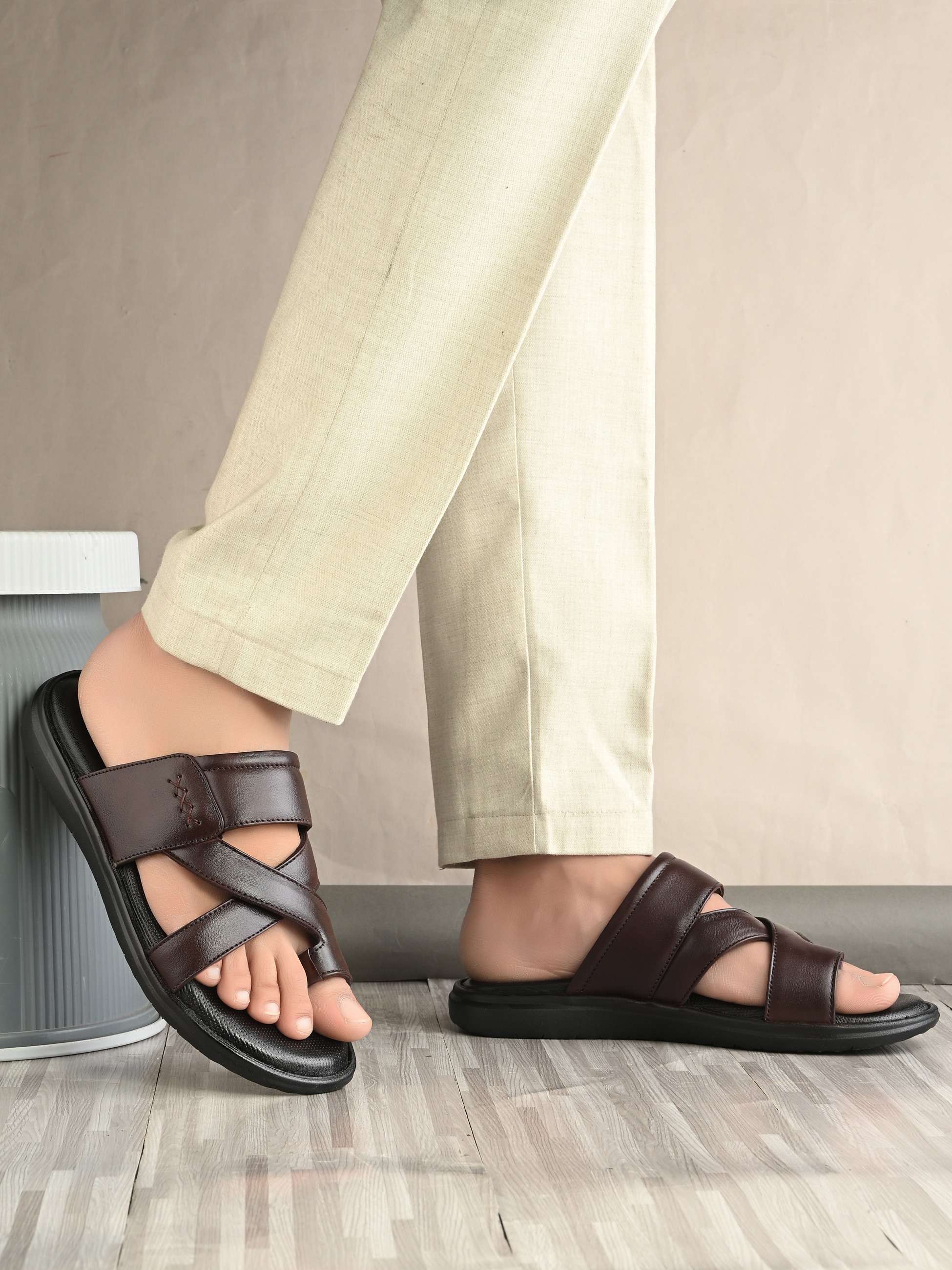 The Classic X-Strap Sandals from the Leather Legacy Series embody understated sophistication and everyday practicality. Handcrafted from 100% genuine leather, these sandals feature a pure leather insole that ensures durability and eliminates any chipping concerns. The lightweight Airmix sole delivers excellent traction and effortless cushioning, making each step soft and stable. The classic cross-strap design provides a secure fit and versatile appeal — a perfect companion for both relaxed and semi-formal occasions.
