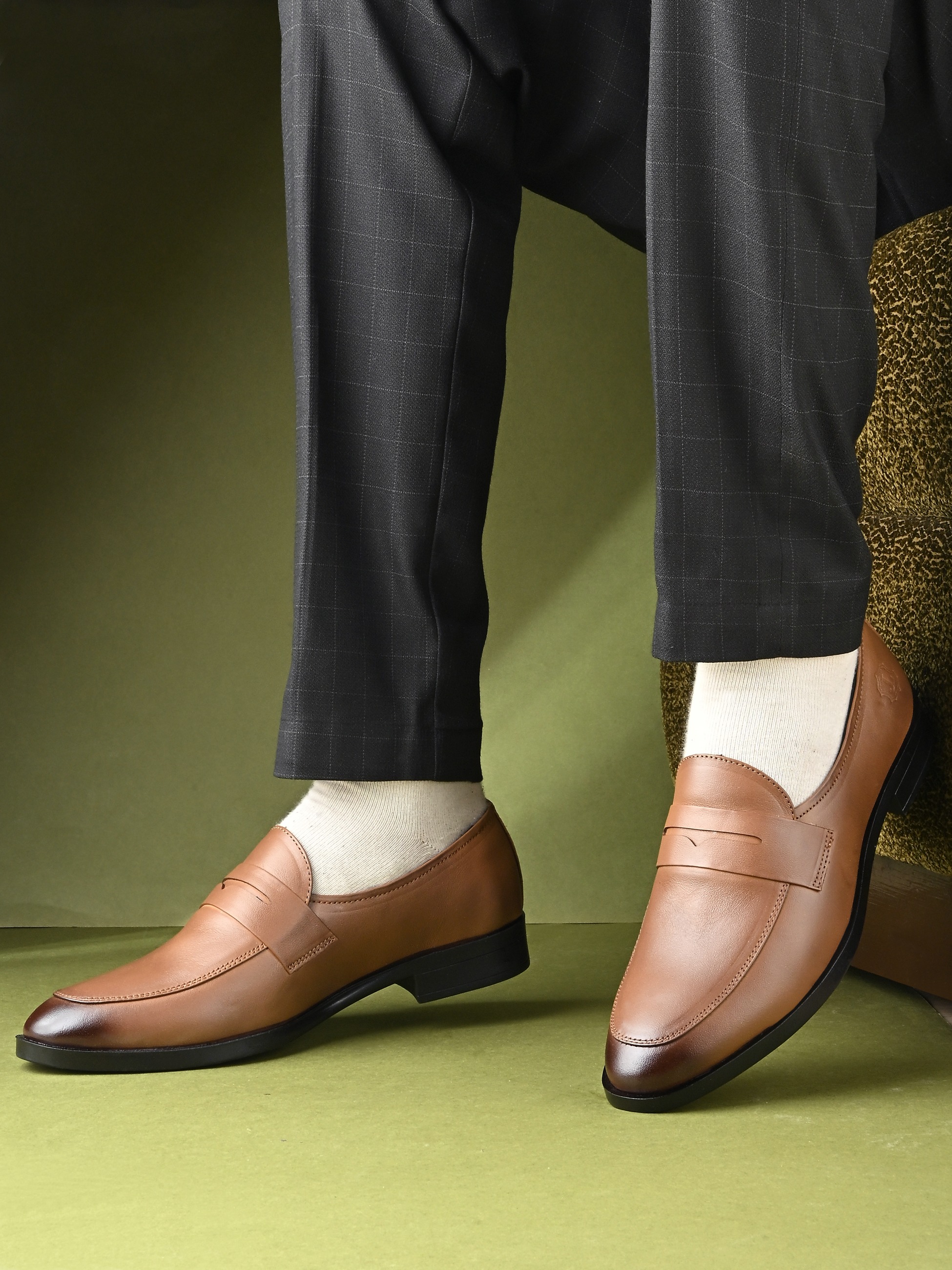 Handcrafted genuine leather Noble Penny Loafers with cushioned leather insole for breathability and all-day comfort. Sleek slip-on design with penny strap, built on a sturdy TPR sole. Perfect for office, travel, and casual outings.